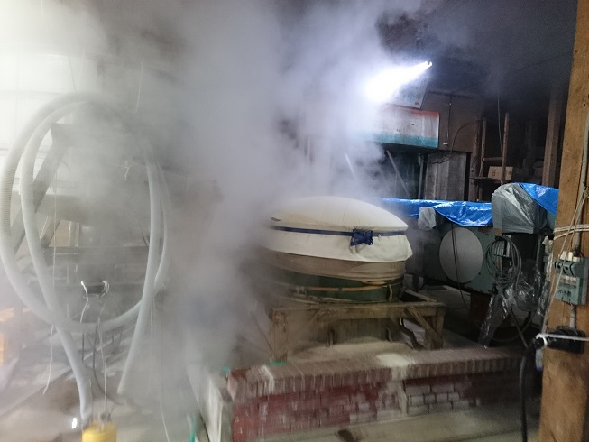 翌5日の「糀」の仕込みに始まり(この間、西田町連会長には何度もお手伝い頂きました)11日まで、酒造りの常道「三段仕込み」で、精米度が60%に達していない事を除けば、吟醸酵母や低温で熟成するなど「吟醸」の製法で、作って頂きました。