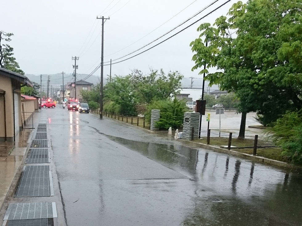 消防も駆けつけましたが、雨の勢いが収まるまでは為す術もなく、雨が弱くなったところで水が引き始め、