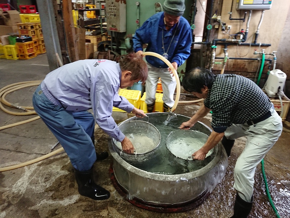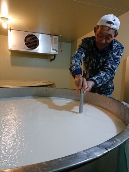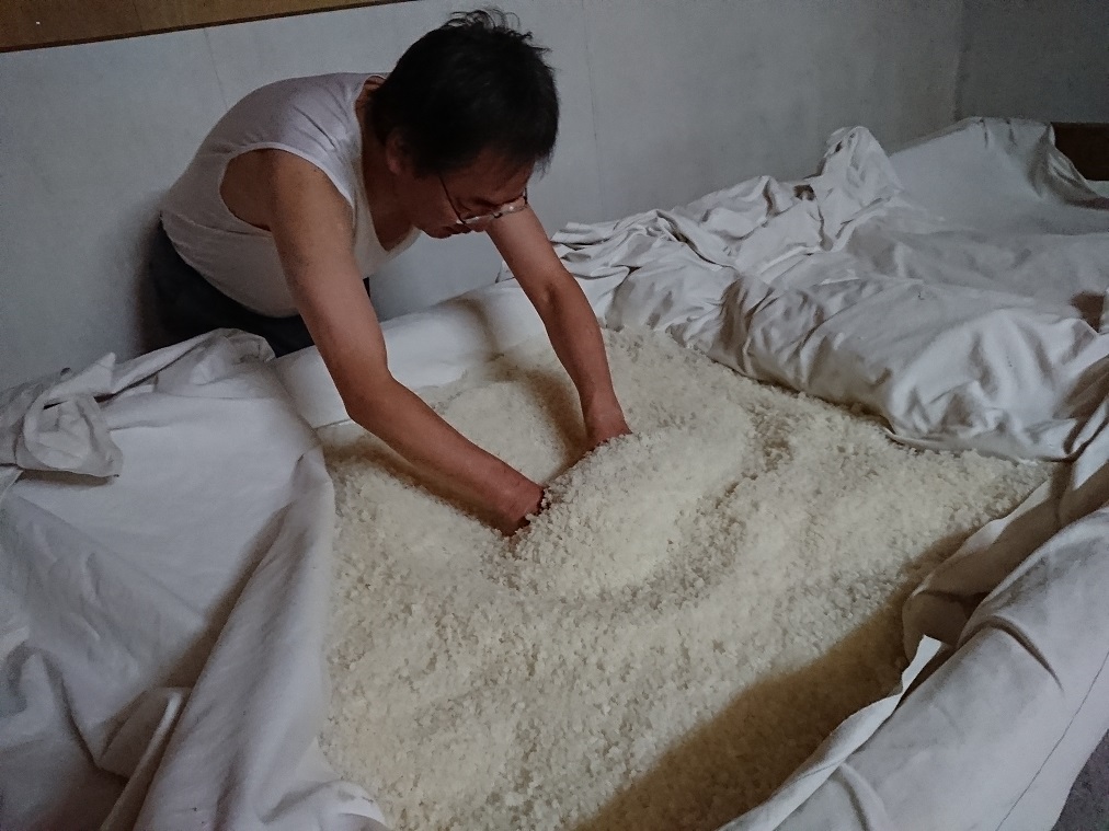 今年は、昨年入れなかった「麹室」にて、麹を混ぜ込む作業も体験。 もはや「杜氏」の域に!